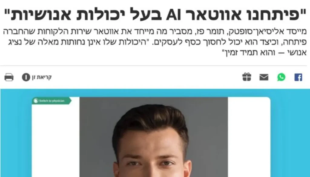למוצר יש גם פיצ'ר אווטאר מדבר מגניב אשר נוצר על ידי טכנולוגיית Interactive AI נכתבו 3 פטנטים על הטכנולוגיות ועוד פטנטים בדרך. המוצר פותח בשיתוף פעולה עם מפתחיה של Elysian.