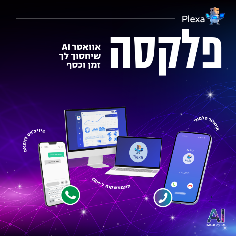 Plexa הוא אוואטר AI חכם שתוכנן לנהל שירות לקוחות, לייצר לידים ולהניע תהליכי מכירה, והכול באופן אוטומטי, פשוט וזול.